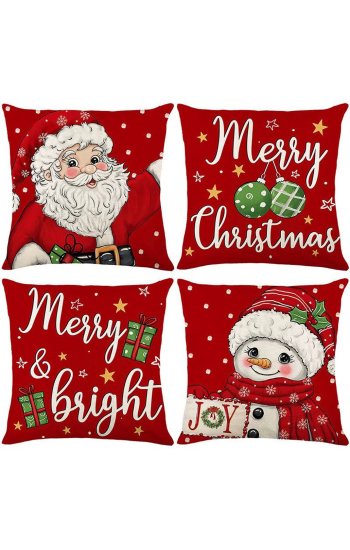 Type de produit :Lot de 4 housses de coussin Dimensions : 45x45cm Housses de Coussin Décoratives de Noël, 45x45 cm Apportez la magie des fêtes dans votre intérieur avec nos magnifiques housses de coussin à motifs de Noël ! Entre sapins scintillants, flocons élégants et rennes joyeux, elles transforment instantanément votre salon en un cocon chaleureux et festif. Pourquoi vous allez les adorer : Ambiance de Noël garantie : des designs inspirés de l’esprit des fêtes pour une déco pleine de charme. Confort et douceur : confectionnées en 100 % polyester de qualité, elles sont agréables au toucher et durables. Faciles à entretenir : lavables en machine, elles ne boulochent pas et gardent leurs couleurs éclatantes saison après saison. Taille parfaite : format 45 x 45 cm, idéal pour la plupart des coussins standards.